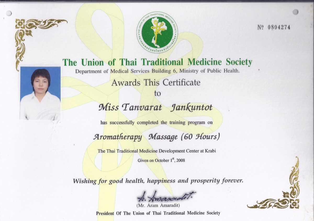 Thai Massage (372 Hours) ( bei The Society of Thai Traditional Medicine Development of Thailand).